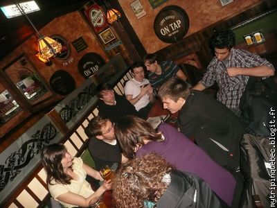 The neighbour just beneeth our flat come two times ... and the second time said that next time he'll call the police :(, ..., so we moved to an irish pub named the galway.